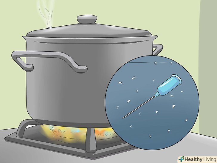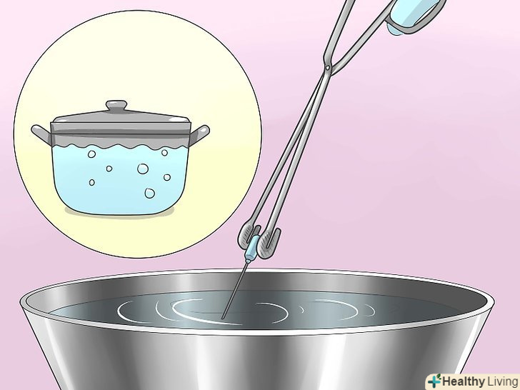 Прокип'ятіть голку у воді.голку також можна простерилізувати в окропі. Після того як ви вимиєте і сполоснете свої інструменти, покладіть їх у воду і прокип'ятіть протягом 20 хвилин. Відлік починайте після того, як закипить вода.