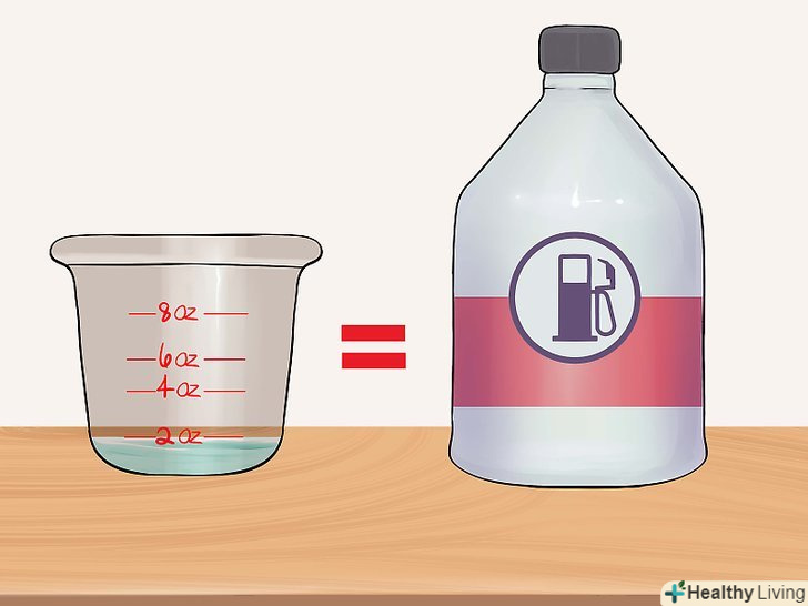 Визначте обсяг Seafoam, який вам потрібен.З'ясуйте, скільки літрів палива вміщається в Баку вашого автомобіля. Пропорція наступна: на кожні 4 л палива потрібно додати 30 мл Seafoam. [3]- Якщо додати Seafoam безпосередньо в паливний бак, можна отримати ряд переваг. Він сприяє прочищенню відкладень в паливній системі, тим самим хід вашого автомобіля стане плавніше. За допомогою нього також контролюється накопичення вологи в паливі, воно стабілізується і змащуються верхні циліндри.