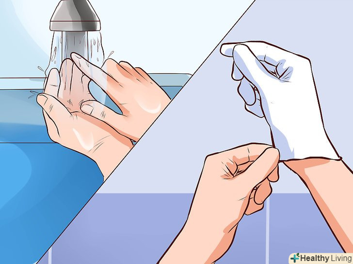 Вимийте руки і надіньте стерильні рукавички.рукавички є важливою частиною ПЗЗ (персональних захисних засобів), якими медичні співробітники захищають себе і пацієнта під час медичних процедур. У разі установки катетера, це робиться, щоб бактерії не потрапили в уретру пацієнта, а на руки персоналу — біологічні рідини.[3]