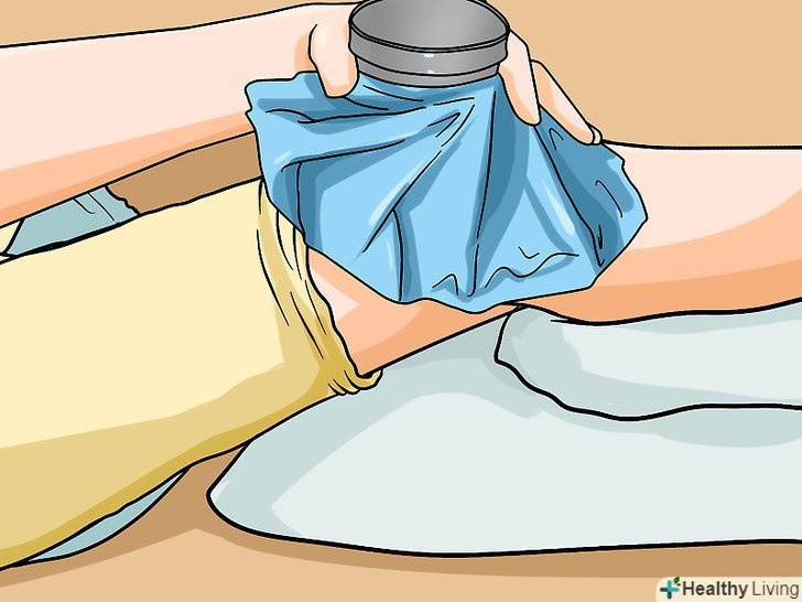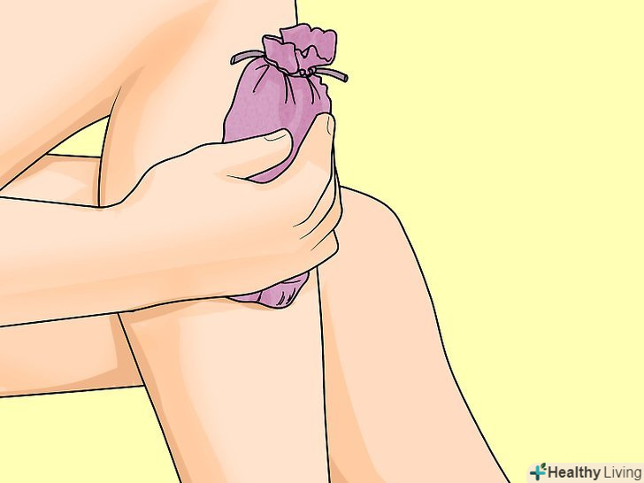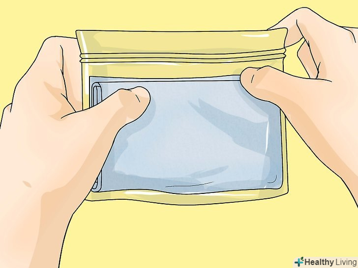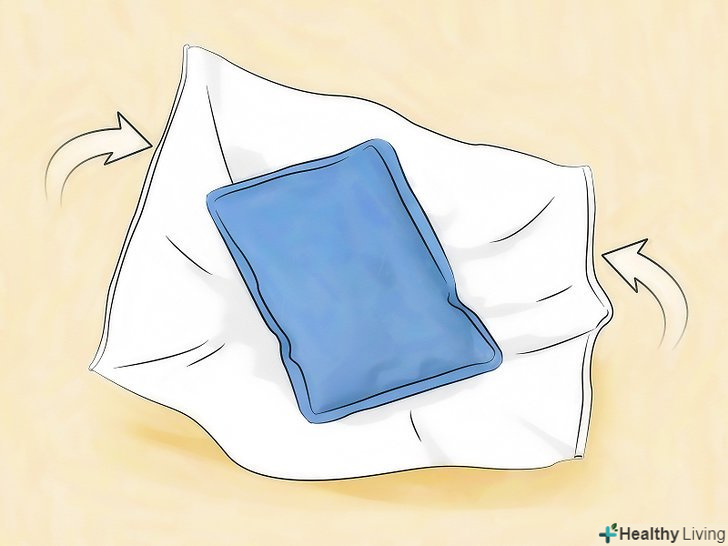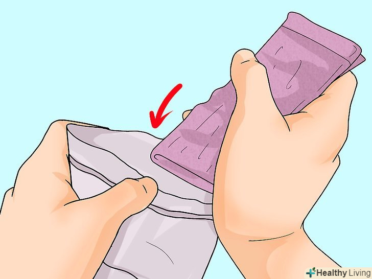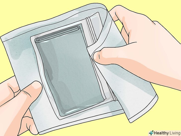 Загорніть пластиковий пакет в чистий рушник.не слід прикладати пакет безпосередньо до свого тіла, тому в якості захисної прокладки між ним і шкірою використовуйте чистий рушник. Покладіть пакет посередині рушника і загорніть його. Оберніть пакет рушником з усіх боків, щоб він не вислизнув, залишивши при цьому одинарний шар тканини між пакетом і шкірою.