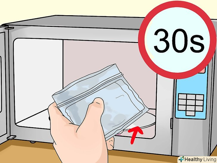 Запечатайте мочалку в пакеті.розігрів в мікрохвильовій печі мокру мочалку до потрібної вам температури, запечатайте пакет з нею, щоб мочалка не охолола занадто швидко. І ще раз, будьте обережні, щоб не обпектися. Оберніть руки прохолодним рушником або використовуйте кухонні прихватки, коли будете закривати пакет на застібку.