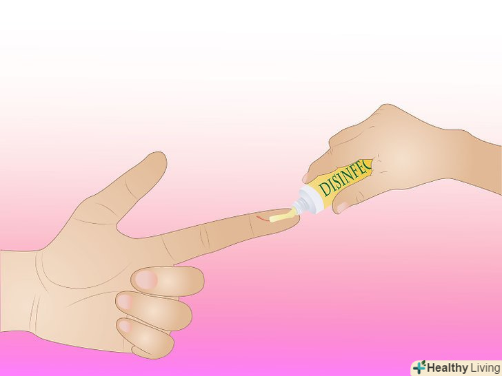 Нанесіть дезінфікуючий засіб.Неоспорин найкраще підходить для даної мети. Застосовуючи дезінфікуючий препарат, ви запобігаєте зараженню рани.
