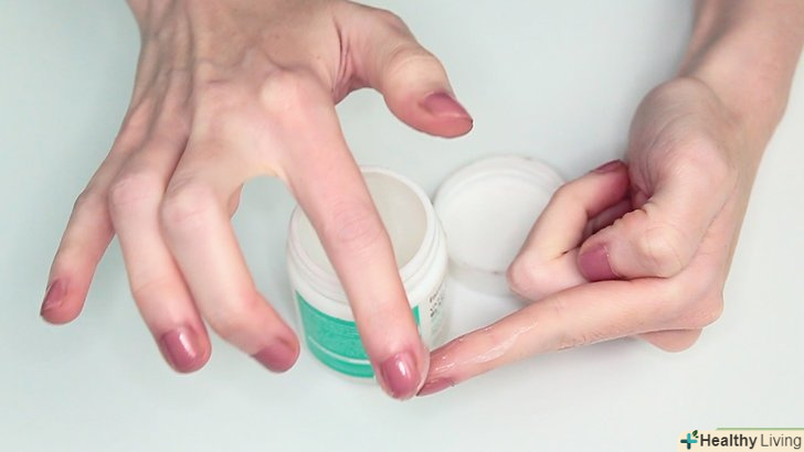 Нанесіть вазелін або вазеліновий лосьйон на шкіру.обидва види вазеліну (мазь і лосьйон) здатні руйнувати зчеплення клею зі шкірою. Щедро обробіть забруднену шкіру вазеліном, щоб вона добре їм просочилася.[4]- Втирайте вазелін в шкіру протягом декількох хвилин.обережними масажними рухами втирайте вазелін в забруднену шкіру. Як тільки відчуєте, що контакт клею зі шкірою починає руйнуватися, потягніть за шар клею, пристав до шкіри. Потім обережно зішкребіть залишки клею.[5]