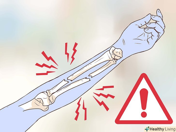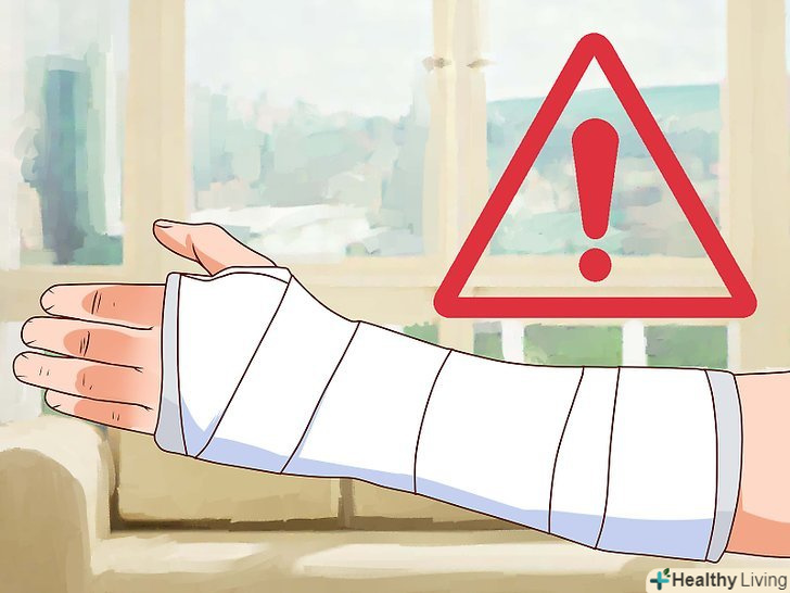 Будьте готові до можливих ускладнень після травми.[10] після відкритого перелому можуть виникнути такі ускладнення, як інфекція рани, зараження правцем, пошкодження нервів і кровоносних судин, синдром тривалого здавлення. Інфекція може привести до незрощення перелому, тобто краю зламаної кістки не зростуться разом. Це може викликати інфекцію кістки, що загрожує ампутацією.- Ймовірність інфекції може бути різною. Ризик інфекції максимальний при відкритому переломі великогомілкової кістки ноги — в цьому випадку її ймовірність становить 25-50%, що значно впливає на загоєння і відновлення функції ноги.[11] в інших серйозних випадках ймовірність інфекції може досягати 20%. Тим не менш, чим менше часу пройшло між отриманням травми і медичною допомогою, тим нижче ризик інфекції.[12]