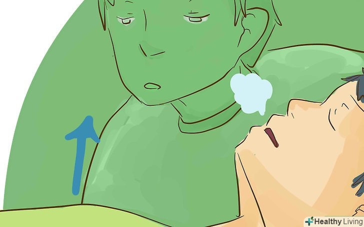 Перевірте дихання. чи піднімається груди, чи відчувається дихання на вашій щоці, чи чутні звуки дихання. Якщо людина дихає, покладіть його в рятівне становище наступним чином.
