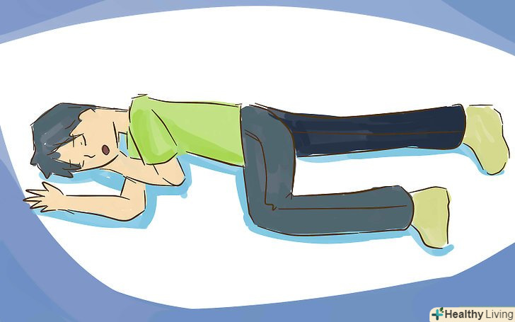 Підніміть далеке від вас коліно, щоб нога була зігнута і стопа стояла на підлозі. потягніть зігнуте коліно на себе, і тіло людини повинно хитнутися на бік.