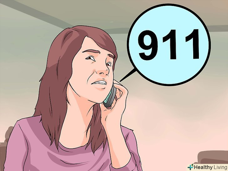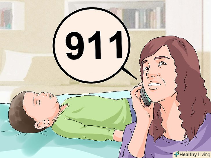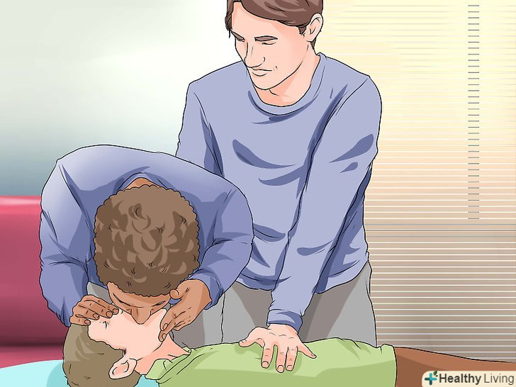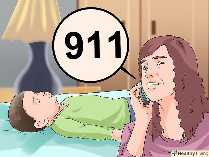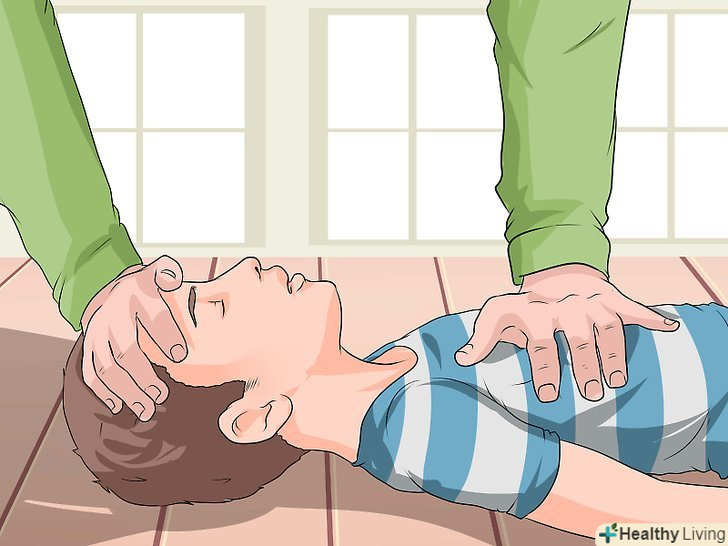 Попросіть викликати швидку допомогу.якщо поруч з вами є хтось ще, попросіть його / її зателефонувати в швидку, поки ви будете надавати дитині першу допомогу. Якщо поруч більше нікого немає, а дитина зовсім не дихає, тоді перш ніж дзвонити в швидку, ви повинні почати проводити реанімацію, щоб у дитини відновилася циркуляція крові і кисню.[12]- Якщо поруч немає інших людей, але вони знаходяться в межах чутності, тоді починайте надавати першу допомогу, час від часу кличучи на допомогу. В ідеалі, хтось зможе зателефонувати на номер швидкої допомоги, поки ви будете допомагати дитині.