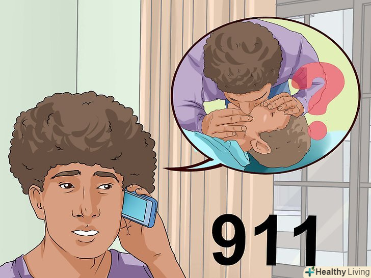 Зателефонуйте в швидку допомогу.якщо поруч є хтось ще, попросіть його зателефонувати і викликати швидку, поки ви будете надавати першу допомогу. Якщо поруч з вами немає нікого, хто міг би допомогти, тоді самі викличте швидку і лише потім приступайте до виконання СЛР.[24]- Швидко і чітко виконуйте вказівки оператора, щоб ви могли повернутися до СЛР, поки чекаєте на допомогу.