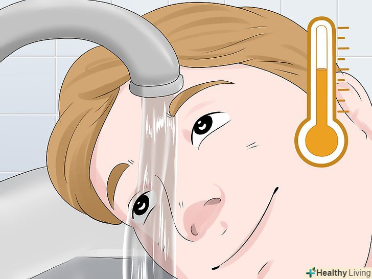 Промийте постраждалу ділянку проточною теплою водою.потримайте постраждалу шкіру або очі під струменем води 15-20 хвилин. Якщо це не зупинить печіння, продовжуйте промивати опік до прибуття медиків.- Якщо отруйна речовина потрапила в очі, потерпілому слід часто моргати очима. Не давайте йому терти очі руками, оскільки це може тільки погіршити ситуацію.