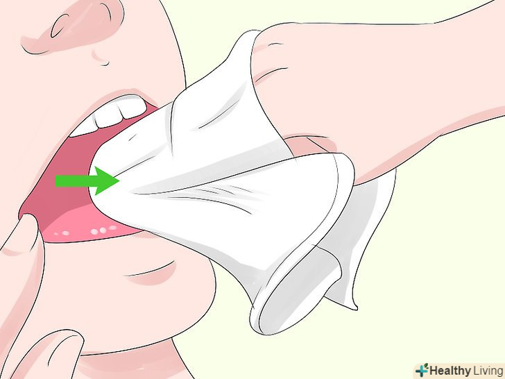 Очистіть дихальні шляхи.якщо людина проковтнула якусь побутову дрібницю, таблетки або інші речовини, важливо переконатися, що частини цих предметів або речовин не застрягли в роті або дихальних шляхах. Оберніть долоню чистим рушником, розкрийте рот людини і видаліть рушником сліди речовин або частини предметів.[3]- Якщо це викликає блювоту, заново очистіть порожнину рота і переконайтеся, що дихальні шляхи вільні.
