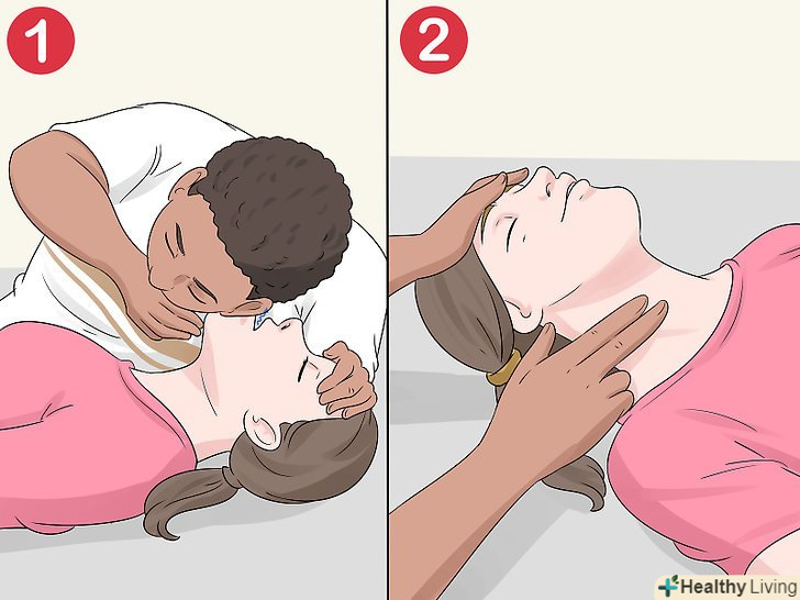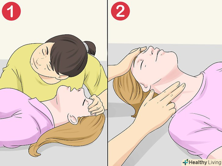Перевірте дихання і пульс.спробуйте промацати пульс, перевірити, чи дихає людина і чи вільні його дихальні шляхи. Якщо вам не вдалося намацати пульс або почути дихання, як можна швидше проведіть процедуру штучного дихання.- Якщо потерпілий - дитина або немовля, проведіть процедуру штучного дихання з поправкою на вік (більш детальну інформацію можна знайти в Інтернеті).