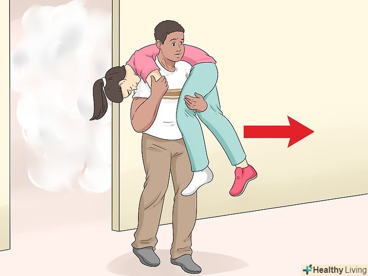 Негайно покиньте местро поширення парів або газу.токсичні пари, дим і газ служать джерелами отруєння. Перемістіть потерпілого і всіх, хто знаходиться в зоні ураження, на безпечну відстань. Найкраще вийти на вулицю і відійти якнайдалі від будівлі, де сталося отруєння.- Якщо вам потрібно вивести або винести людину з будівлі, перш ніж увійти всередину, накрийте рот і ніс вологим шматком тканини і затримайте дихання.[4]