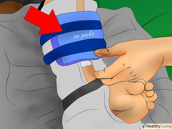 Використовуйте пакетики з льодом, щоб приглушити біль і зменшити набряк.для початку замотайте ці пакети в тонкий рушник. М'яко покладіть їх на область перелому. Це допоможе утримати кровотечу, зменшити набряк і приглушити біль. [3]