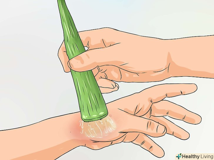 Використовуйте алое Віра. нанесіть сік листя рослини алое вера або використовуйте вже готовий продукт з високою концентрацією соку алое вера. Алое віра може допомогти зменшити почервоніння і запалення, а також печіння ураженої кропивою ділянки. [14]