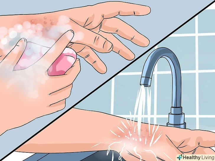 Використовуйте воду та мило. промийте обпалене місце водою з милом — це допоможе видалити хімічні речовини рослини, які можуть викликати біль, набряк, почервоніння і свербіж. Дуже часто, після промивання ураженої області, почервоніння і біль проходять повністю або істотно зменшуються. [4]