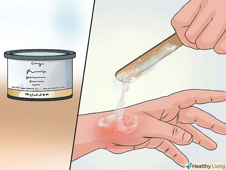 - Нанесіть крем або мазь з антибіотиками. Деякі безрецептурні препарати містять протизапальні компоненти. Нанесіть крем або мазь з антибіотиком безпосередньо на уражену ділянку. Зазвичай такі мазі мають охолоджуючий і заспокійливий ефект, а крім цього запобігають інфікування. [17]