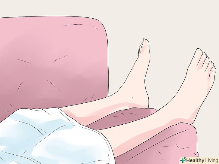 Розташуйте забите місце на узвишші.це особливо важливо, якщо ви забили кінцівку. Розміщення травмованої ділянки в піднятому положенні дозволить уповільнити циркуляцію крові в цій області, що не дасть гематомі збільшуватися.[3] підкладіть під кінцівку подушки або ковдри.- Місце удару повинно знаходитися вище рівня серця. Це зменшує місцевий капілярний тиск і тиск в тканинах, знімає набряк, сприяє лімфодренажу і розщепленню відпрацьованих виділень в крові.