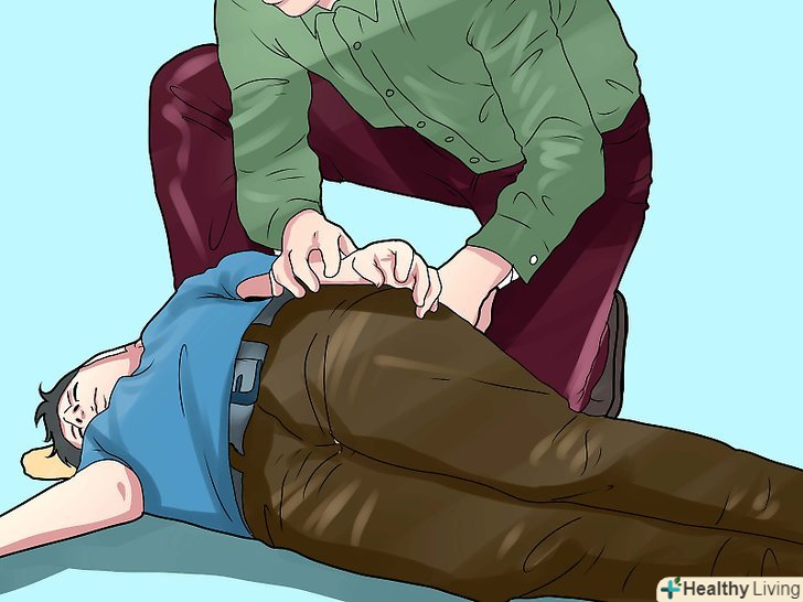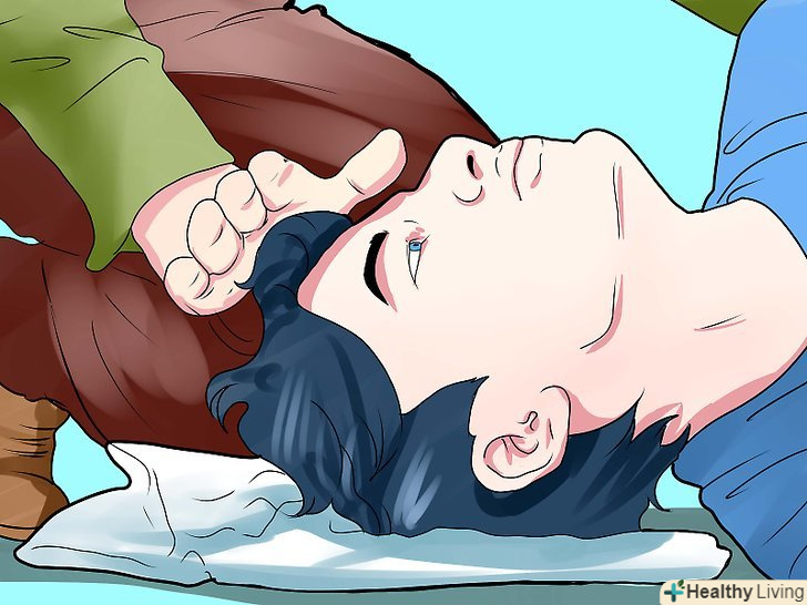 Покладіть людину на підлогу, щоб він не впав. по можливості поверніть його на бік, щоб він не задихнувся в разі блювоти. [18] найкраще повертати хворого на лівий бік, але якщо це неможливо, не переживайте, тому що лежати на будь-якому боці краще, ніж на спині.- Що б ви не робили, не обмежуйте рухи людини, якщо він різко смикається. Приберіть подалі будь-які предмети, про які він може поранитися. [19]