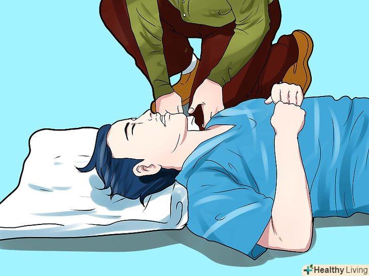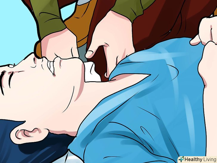 Перевірте, чи дихає людина. якщо дихання ускладнене, перевірте, чи не перекриває що-небудь дихальні шляхи (наприклад, їжа). [10] якщо ні, не вставляйте ніякі предмети в рот.- Хоча деякі фахівці рекомендують просунути хустку між зубів, щоб людина на прокусив мову, цим ви можете тільки заподіяти більше шкоди. Не варто намагатися вкласти в рот що-небудь, включаючи їжу, таблетки або воду.