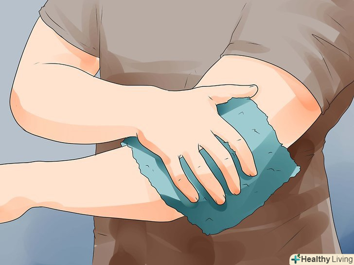 Очистіть опік.помийте його акуратно чистою мочалкою, використовуючи теплу воду і антибактеріальне мило. Видаліть всю видиму бруд і сміття. Це допомагає запобігти появі інфекції. [1]