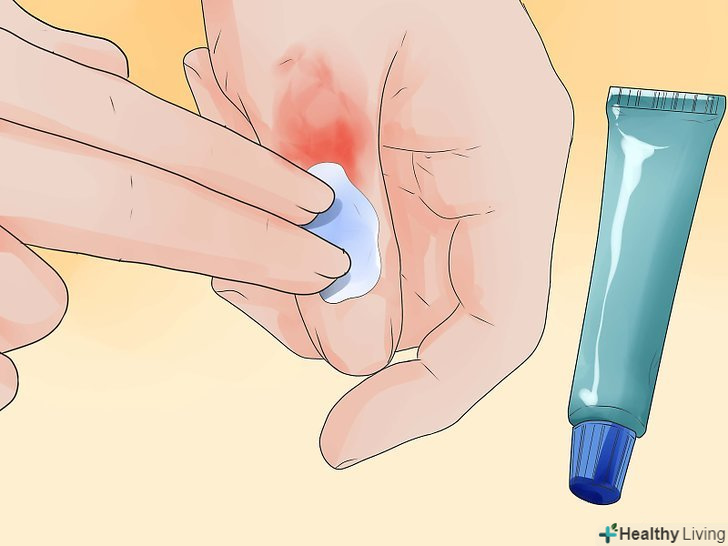 Нанесіть на пошкоджену ділянку продавану без рецепта антибактеріальну мазь.ви можете використовувати мазь Неоспорин.- Зверніть увагу, чи немає глибоких пошкоджень, наприклад, порізів або рваних ран. Якщо є, обов'язково зверніться за медичною допомогою.
