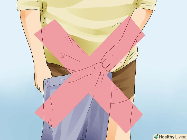Не надягайте одяг на місце опіку. Тканини можуть дратувати уражене місце. Якщо вам необхідно надіти предмет одягу на місце опіку, покрийте його бинтом або марлею. [6]