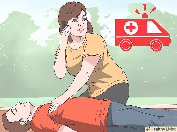 Необхідно визначити, чи дихає потерпілий. придивіться, чи рухається грудна клітка. Прислухайтеся, чи надходить повітря в легені. Нахиліться якомога нижче до рота потерпілого, щоб відчути його дихання на своїй щоці. [3] [4]- Якщо людина не дихає і не проявляє інші ознаки життя, тобто не рухається, не кашляє, зробіть штучне дихання і зателефонуйте в службу екстреної допомоги або нехай подзвонить хтось інший. [5]