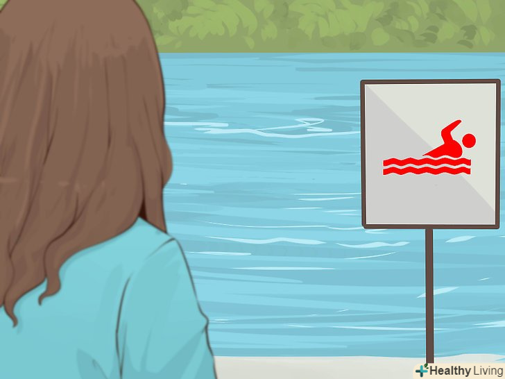 Плавайте тільки в дозволених до плавання і захищених місцях. якщо ви відпочиваєте біля річки або басейну, плавайте тільки там, де це безпечно. Якщо ви не впевнені в місці, де вам належить плавати, проявіть обережність і плавайте там, де ви відчуваєте собі в безпеці. [28]- У водоймах можливі течії, в тому числі розривні (від берега), що становить небезпеку навіть для досвідчених плавців. [29]