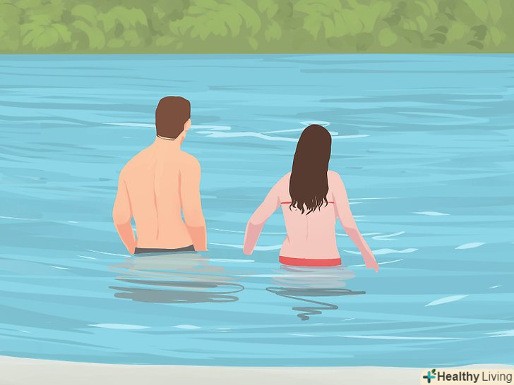 Плавайте з другом. це не тільки весело, але і більш безпечно. Завжди плавайте зі знайомою людиною, якщо турбуєтеся про безпеку. [30]