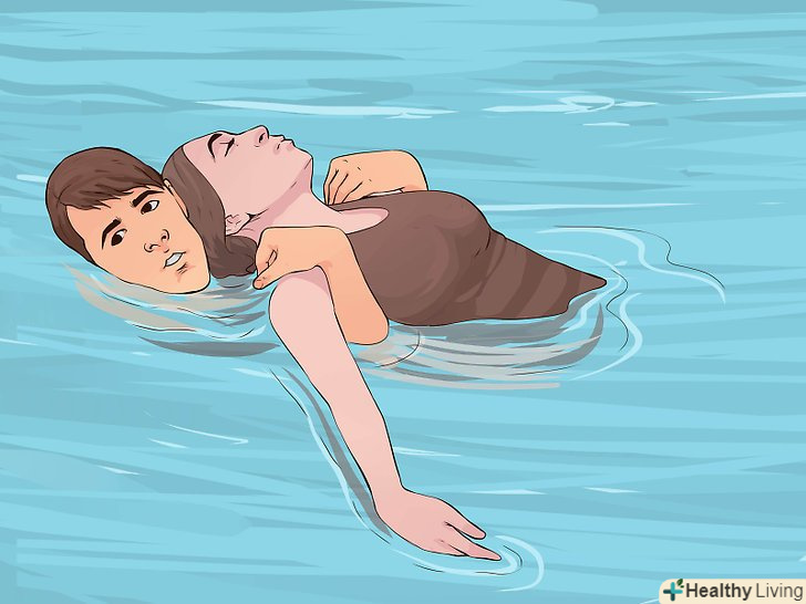 Увійдіть у воду і підтягніть людини до нетонущему предмету. якщо людина не може схопитися за рятувальний круг або жердину або знепритомнів, підійдіть або підпливіть до нього. Важливо пам'ятати, що людина панікує, через що він може заподіяти вам фізичну шкоду або ускладнити надання допомоги.- Найкраще підходити до людини ззаду. Якщо людина панікує, він може сильно вхопитися за рятувальника, через що потонуть обидва. Розмовляйте з людиною, говорите, що ви поруч. Підпливіть ззаду і скажіть так: "я врятую тебе. Будь ласка, не панікуй".