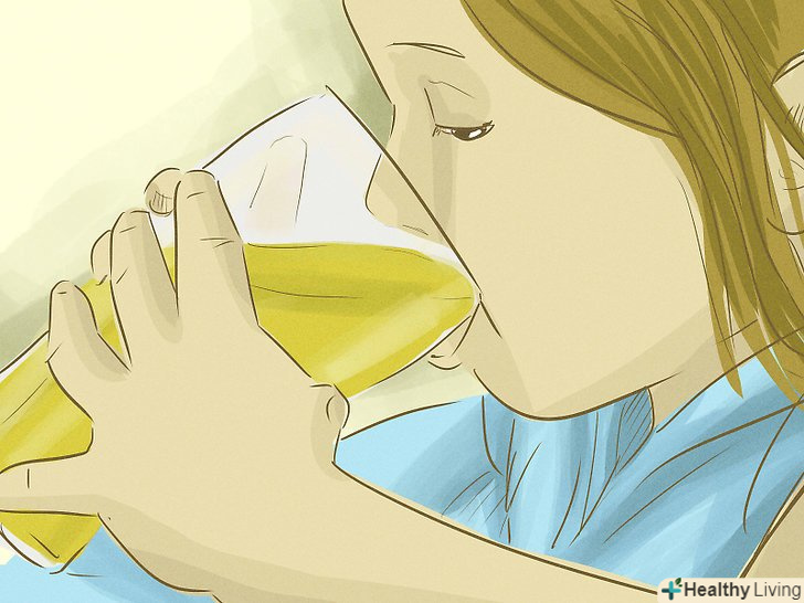 Пийте воду, щоб забезпечити організм достатньою кількістю рідини. поряд з відпочинком необхідно вчасно втамовувати спрагу. [4] при високій температурі люди часто потіють, в результаті чого організм втрачає додаткову кількість рідини. Щоб компенсувати ці втрати, пийте достатньо води.- Хоча діти частіше вважають за краще солодкі напої і соки, вони гірше заповнюють запас рідини в організмі, ніж проста вода. Однак, якщо дитина погоджується пити тільки солодкі напої або сік, це все ж краще, ніж нічого.