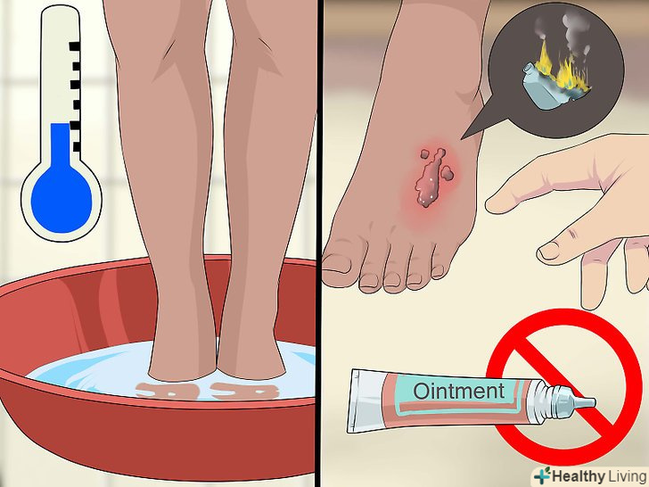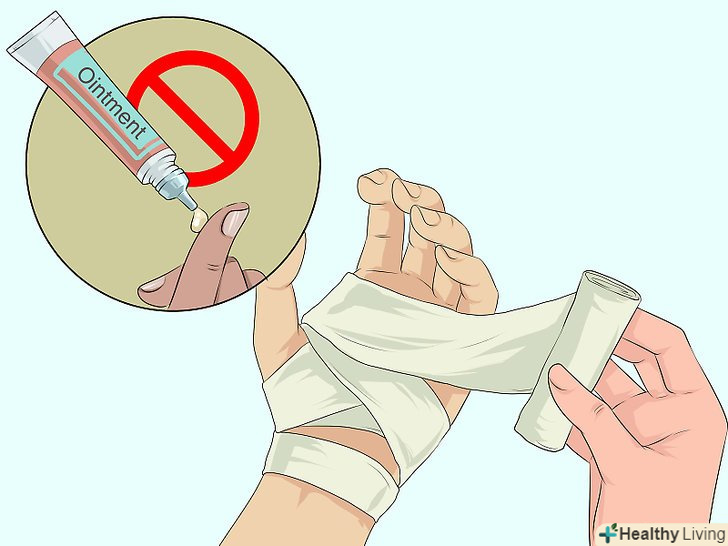 - Не охолоджуйте місце опіку водою, перш ніж накласти пов'язку, і не наносите на нього мазь або будь-яке інше засіб. Це може призвести до інфекції.