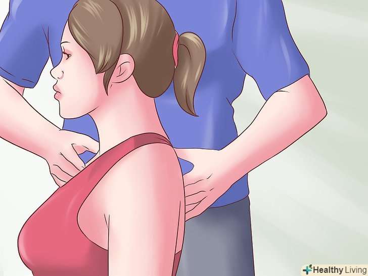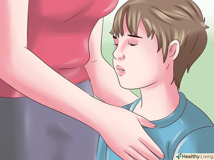 Покладіть долоню на верхню частину грудей людини, трохи нижче ключиці.