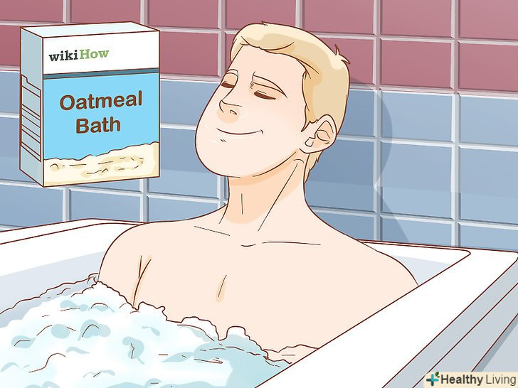 Боріться з свербінням за допомогою прохолодної ванни з вівсяними пластівцями дрібного помелу. наберіть у ванну прохолодної води, додайте вівсяні пластівці. [13] використовуйте 85 грамів вівсяних пластівців на ванну. Полежте у ванні 20 хвилин, змийте вівсянку чистою водою і промокніть шкіру рушником.- Вівсяні пластівці дрібного помелу можна купити у відділі товарів краси і здоров'я, а також в аптеці.