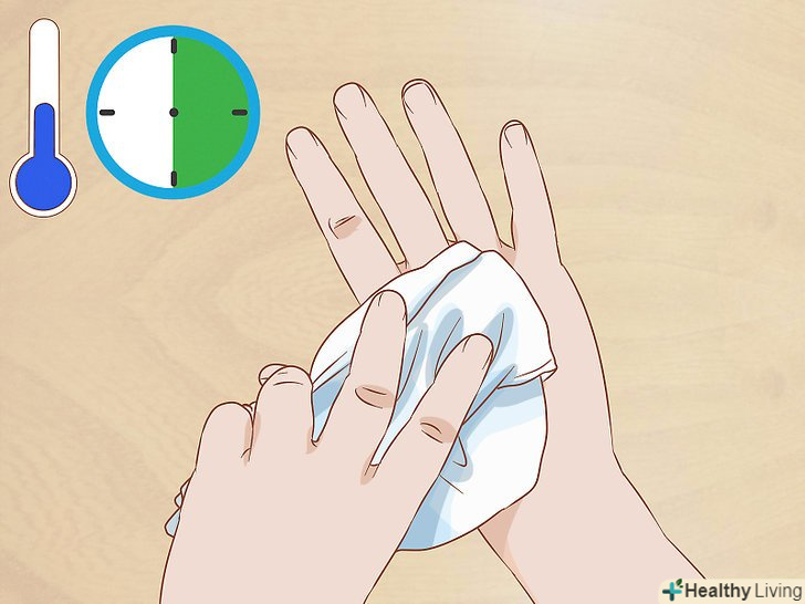 Прикладайте холодний компрес на 15-30 хвилин, щоб зменшити набряклість. опустіть чисту ганчірку в прохолодну воду. Можна робити компрес кілька разів на день, використовуючи одну і ту ж ганчірку, але краще кожен раз брати нову. [15]- Можна намочити ганчірку не водою, а рідиною, що володіє в'яжучими властивостями (наприклад, охолодженим чорним чаєм або яблучним оцтом). Деяким такий варіант подобається більше.
