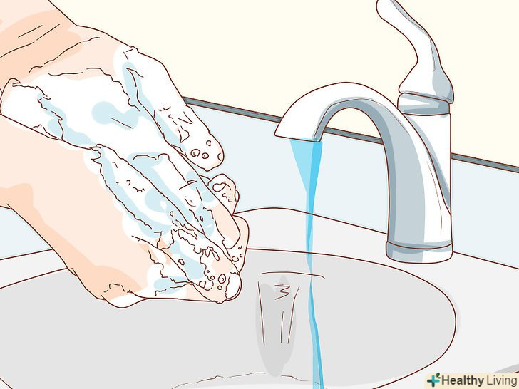 Промийте шкіру якомога швидше після контакту. підставте шкіру під холодну проточну воду на кілька хвилин. Не занурюйтеся в воду цілком. Змийте масло звичайним милом. Зробіть це якомога швидше, щоб запобігти появі висипу і не дати маслу поширитися по шкірі. [6]- Краще наносити мило мочалкою або тканиною. Якщо у вас немає мочалки, мильна піна повинна буде захистити ваші руки від масла.