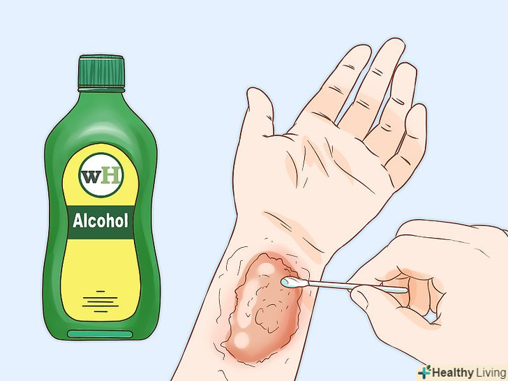 Обробіть шкіру спиртом, щоб видалити масло. можна промокнути шкіру ватним диском, змоченим в спирті, або спиртовою серветкою. Найкраще зробити це протягом 10 хвилин після контакту з рослиною, щоб не допустити розвитку висипу, але можна зробити це пізніше, щоб прибрати залишки масла з шкіри. [7]- Не торкайтеся ватним диском або серветкою до місць, які не контактували з рослиною, щоб не поширити висип.