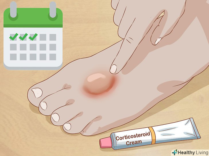 Користуйтеся безрецептурним кортикостероїдним кремом протягом 1-3 днів. видавіть невелику кількість крему і нанесіть на висип ватним диском. Використовуйте мінімальну кількість крему, оскільки кортикостероїди можуть викликати побічні ефекти. Наносите крем повторно кожні 4 години тільки в разі гострої необхідності. [9]- Крем можна використовувати тільки протягом трьох днів після появи висипу.