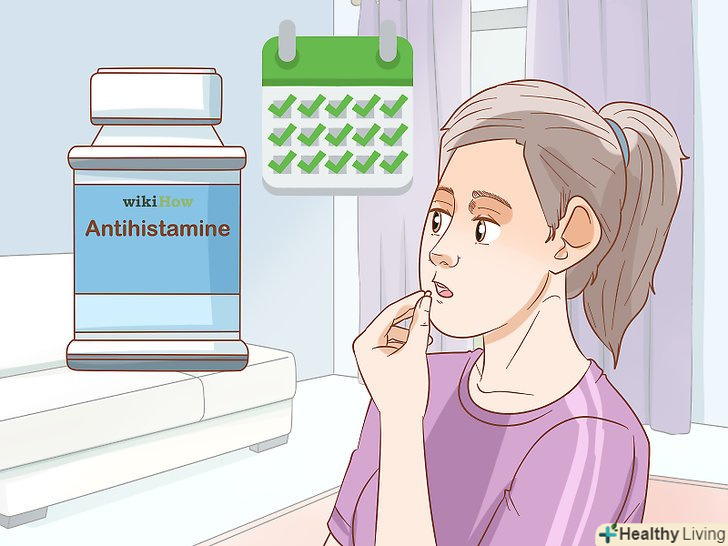 Приймайте антигістамінні всередину відповідно до призначення лікаря. Вам можуть запропонувати Дифенгідрамін ("дифенгідраміну гідрохлорид"), цетиризин ("Зіртек"), лоратадин ("Кларитин"), фексофенадин ("Аллегра"). Антигістамінні послаблять реакцію організму на висип, що дозволить зменшити прояв симптомів. Поговоріть зі своїм лікарем, перш ніж почати приймати антигістамінні препарати, навіть якщо вони продаються без рецепта. [12]- Приймайте препарат відповідно до інструкції. Дифенгідрамін ("дифенгідраміну гідрохлорид") зазвичай приймають кожні 4 години, інші препарати - раз на день.