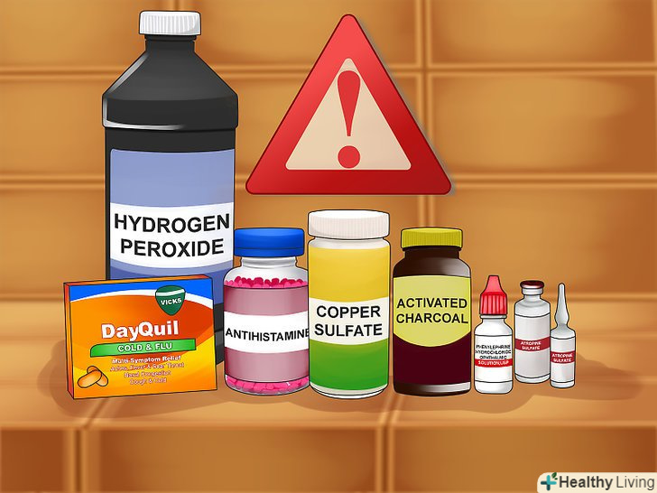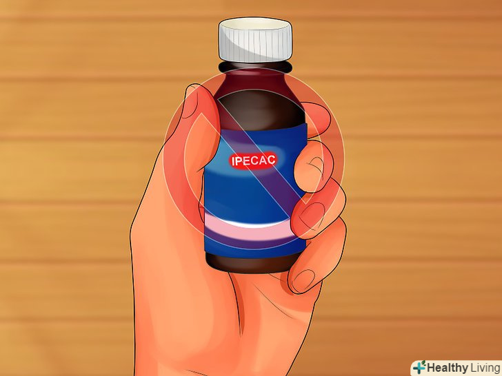 Уникайте застосування блювотних засобів, якщо вони не були призначені. слід уникати застосування відпускаються без рецепта блювотних засобів (препаратів, що стимулюють блювоту), якщо вони не були рекомендовані вам медичним персоналом в екстреному випадку. Наприклад, раніше для виклику блювоти широко застосовувався сироп іпекакуани (блювотного кореня). Однак, було з'ясовано, що з його застосуванням пов'язане ускладнення подальшого лікування отруєнь. В даний час препарати іпекакуани не відносять до відпускаються без рецепта засобів. [5]