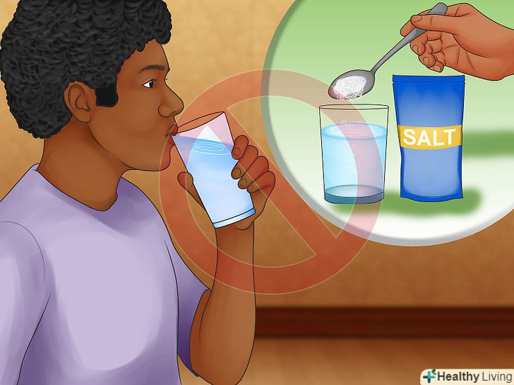 Не пийте солону воду. незважаючи на те, що солона вода є класичним домашнім засобом для стимуляції блювоти, вона може являти собою додатковий ризик для жертви отруєння. Це пов'язано з тим, що при вживанні солоної води отруйні речовини разом з нею можуть далі просунутися по травному тракту, що прискорить їх засвоєння організмом. [6]- Більш того, вживання великих обсягів солоної води може викликати серйозні проблеми зі здоров'ям аж до летального результату.
