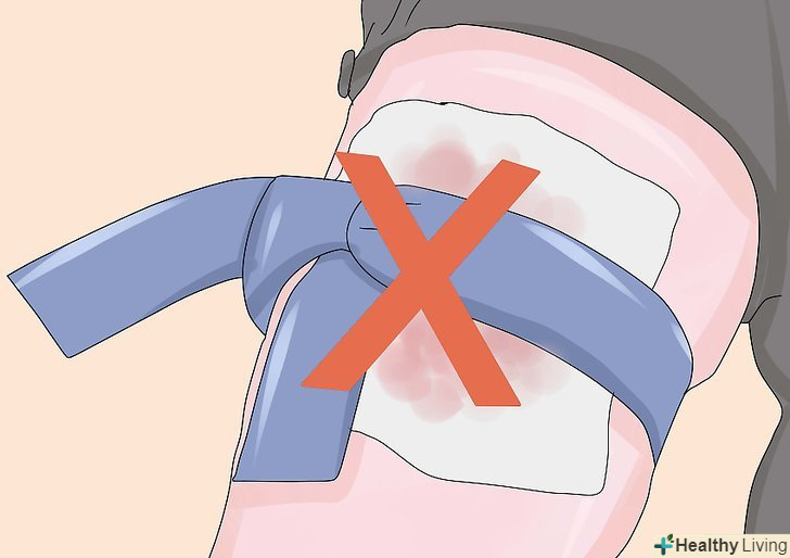 Прикладіть тиск. для цього ви можете використовувати марлю. Якщо у вас немає під рукою марлі, ви можете використовувати рушник або чисту ганчірку. Але все ж, не стерильні перев'язувальні матеріали (ганчірки або рушники), по можливості, не повинні бути використані, якщо в цьому немає крайньої необхідності.