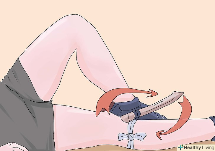 Використовуйте торсіонний пристрій, наприклад палицю. найбільш підходяще торсионное пристрій можна виготовити з міцної палиці від інструменту довжиною 30 сантиметрів і більше. Зав'яжіть простий вузол на вашому торсіонному пристрої, а потім ще один. Це покаже, що ви дійсно досягли натягу, яке зупинить кровотечу.