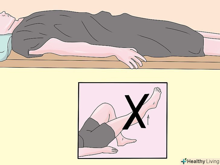 Покладіть пацієнта на спину. якщо ваш пацієнт має зазначені вище симптоми, як можна акуратніше, перекладіть його на спину. Не піднімайте ноги пацієнта, це може привести до відтоку крові.