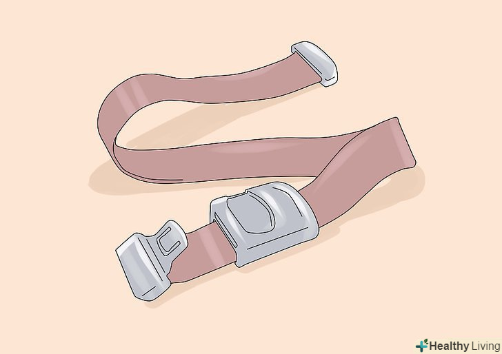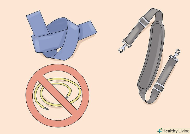 Зробіть джгут з підручних засобів. якщо у вас немає спеціального джгута, або ви не вмієте ним користуватися, ви можете використовувати відрізок міцної матерії, наприклад марлі або мусліну, а також частина сорочки або спідниці. Не користуйтеся тонкими мотузками або проводами, вони можуть привести до появи нових кровотеч при їх натягу.- Як правило, рекомендована ширина джгута повинна бути приблизно 5 сантиметрів.