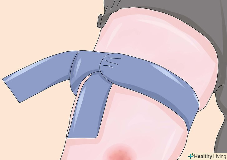 Пов'яжіть ваш джгут на кінцівку між серцем і раною. переконайтеся, що джгут накладений в 5-10 сантиметрах від рани.