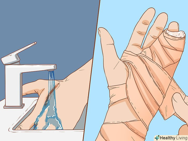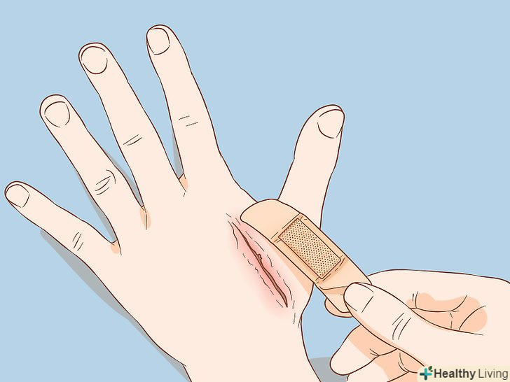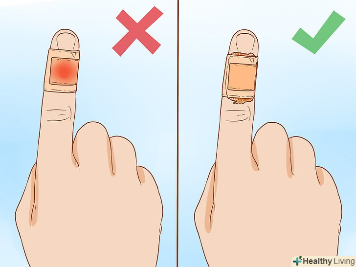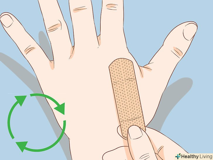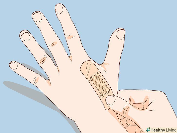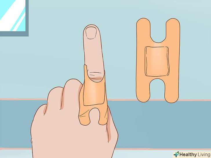 Використовуйте бактерицидний пластир для ран на пальцях рук і ніг. бактерицидний пластир є особливим видом пов'язки у формі літери «Н». Таку пов'язку легко накладати на порізи і садна між пальцями рук і ніг. Зніміть прошарок воскового паперу і закладіть клейкі кінці між пальцями, щоб центральна частина пов'язки перебувала поверх рани. Це запобіжить зміщення пов'язки з місця пошкодження, що дуже важливо, так як рани між пальцями рук і ніг більшою мірою схильні до зовнішніх впливів. [17]