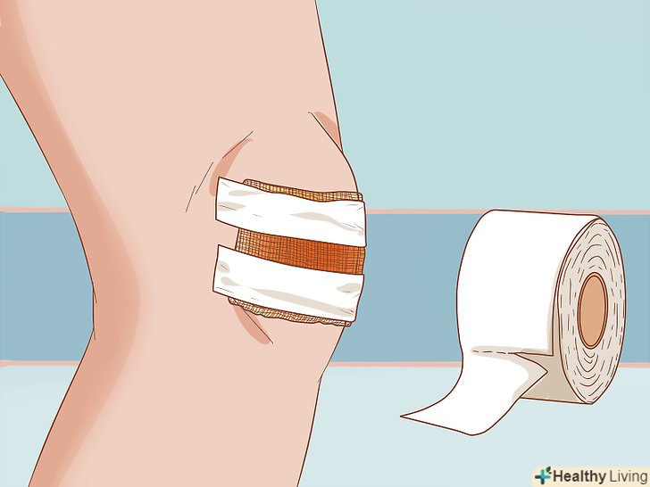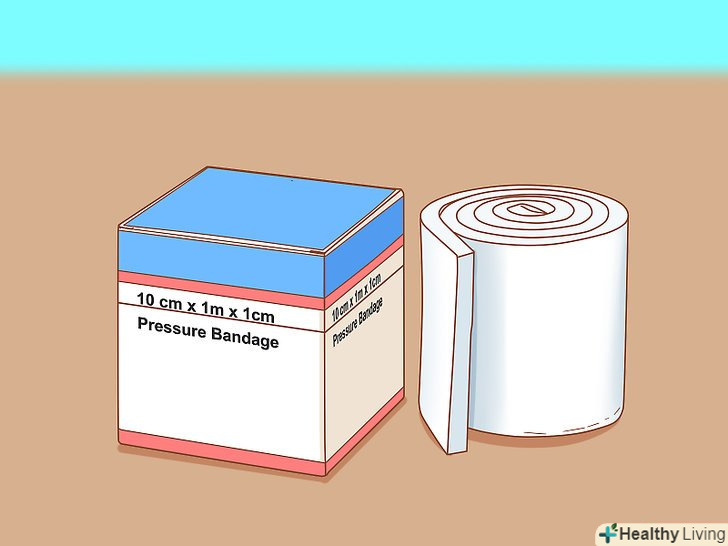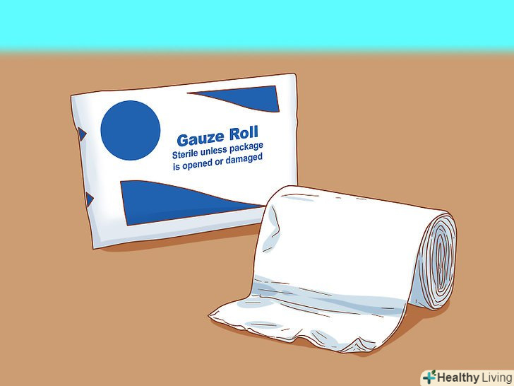Закріпіть марлю. еластичні пов'язки необхідно закріплювати на рані. Потрібно докласти стерильну марлю до рани перед накладенням пов'язки. Марля повинна повністю покривати рану. Найкраще використовувати марлеві прокладки злегка більшого розміру, ніж сама рана. [8]- Якщо це необхідно, можна закріпити марлю лейкопластиром на час накладення еластичної пов'язки.