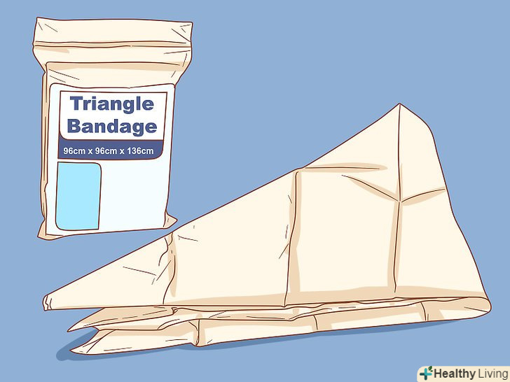 Використовуйте трикутну пов'язку. для закріплення зміщеної або зламаної кістки ідеально підходить трикутна пов'язка. Цю невелику на вигляд пов'язку розгортають у велику пов'язку трикутної форми. Її складають в пов'язку потрібної форми, після чого використовують для підтримки зламаною або зміщеною кістки. Зробіть довгий прямокутник з трикутника і зав'яжіть вузол, щоб вийшла петля. Також можна обмотати пов'язку навколо шини / кістки для більшої підтримки. Сфера застосування трикутних пов'язок може відрізнятися в залежності від пошкодження, тому вам слід вибрати найбільш підходящий варіант. [22]