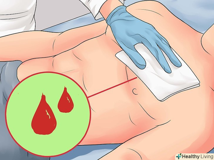 Перевірте, чи не припинилося кровотеча. невеликий поріз за визначенням повинен перестати кровоточити досить швидко. Організм відреагує на поріз і закупорить рану, а при невеликому порізі кровотеча має зупинитися досить швидко. [5]- Порізи в області живота і грудної клітини зазвичай більш серйозні, ніж здаються. Такі рани обов'язково повинен оглянути лікар.